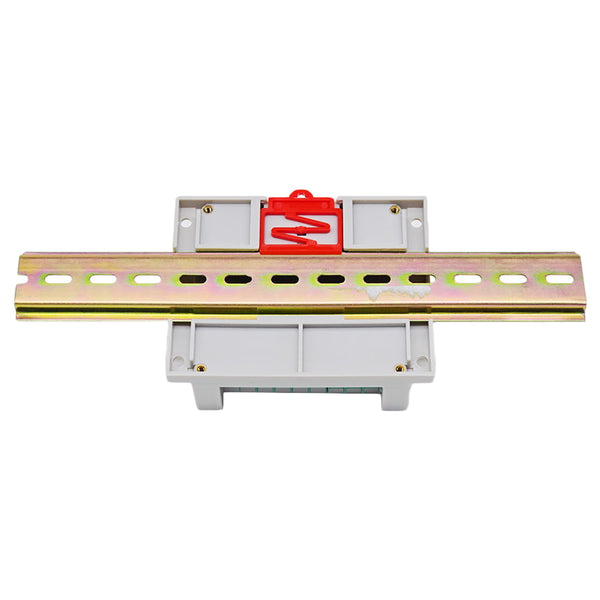 Mit Führungsschienenschnalle und Schraubenlöchern: Die Rückseite des Empfängers ist mit einer Führungsschienenschnalle und Schraubenlöchern ausgestattet, sodass er auf einer 35mm Führungsschiene montiert oder direkt mit Schrauben befestigt werden kann.