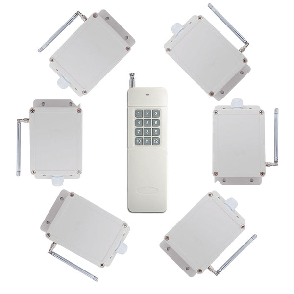 Es handelt sich um ein Ein-Sender-Mehrere-Empfänger System mit trockenem Relaisausgang. Es umfasst sechs S2U-AC-ANT3 Empfänger und einen CV-12 / CB-12 Sender. Es kann in allen Arten von Industrie automation, Landwirtschaft, Haus, Fabrik, Haus, Bauernhof, Fahrzeug, Schiff, Offshore-Betrieb, Luftfahrzeug usw. Es kann AC oder DC Geräte an Land, zu Wasser und in der Luft fernsteuern, wie Lichter, Sirenen, Schlösser, Motoren, Ventilatoren, Winden, Jalousien, Linearantriebe, Türen, Fenster, Elektromagnetventile, Sicherheitsalarm und Geschäftsschilder. Die Anwendungen sind endlos.
