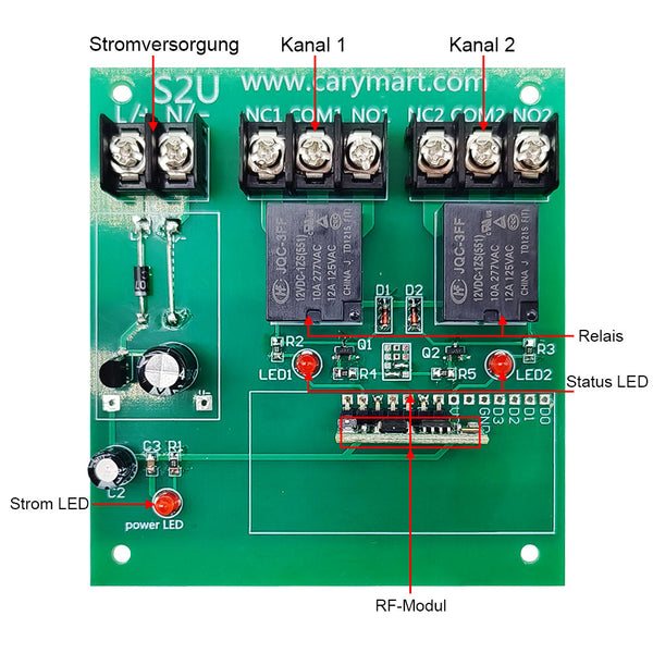 Relaisausgang: Dieser Empfänger ist der trockene Relaisausgang, es können zur Steuerung DC und AC Geräte verwendet werden.