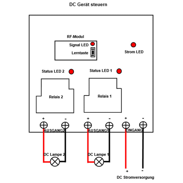 Der Empfänger kann Gleichstrom Geräte mit einer Spannung im Bereich von 10–80 V Gleichstrom steuern.