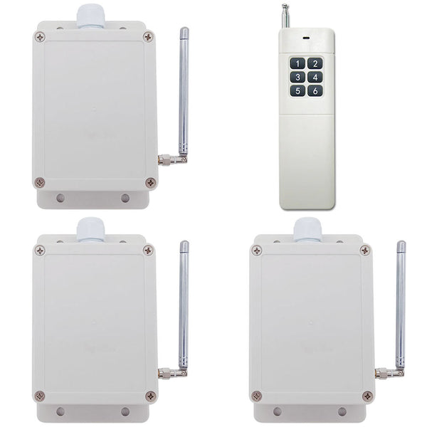 Es handelt sich um ein Ein-Sender-Mehrere-Empfänger System mit DC Stromversorgung Ausgang. Es umfasst drei S2PX-DC-ANT3 Empfänger und einen CV-6 Sender. Es kann in allen Arten von Industrie automation, Landwirtschaft, Haus, Fabrik, Haus, Bauernhof, Fahrzeug, Schiff, Offshore-Betrieb, Luftfahrzeug usw. Es kann verschiedene DC Geräte an Land, zu Wasser und in der Luft fernsteuern, wie Lichter, Sirenen, Schlösser, Motoren, Ventilatoren, Winden, Jalousien, Linearantriebe, Türen, Fenster, Elektromagnetventile, Sicherheitsalarm und Geschäftsschilder. Die Anwendungen sind endlos.