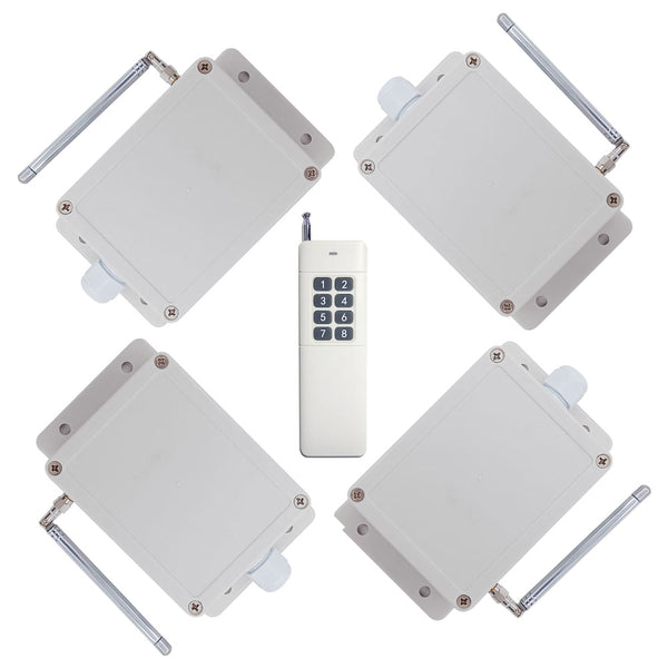 Es handelt sich um ein Ein-Sender-Mehrere-Empfänger System mit DC Stromversorgung Ausgang. Es umfasst vier S2PX-DC-ANT3 Empfänger und einen CV-8 Sender. Es kann in allen Arten von Industrie automation, Landwirtschaft, Haus, Fabrik, Haus, Bauernhof, Fahrzeug, Schiff, Offshore-Betrieb, Luftfahrzeug usw. Es kann verschiedene DC Geräte an Land, zu Wasser und in der Luft fernsteuern, wie Lichter, Sirenen, Schlösser, Motoren, Ventilatoren, Winden, Jalousien, Linearantriebe, Türen, Fenster, Elektromagnetventile, Sicherheitsalarm und Geschäftsschilder. Die Anwendungen sind endlos.