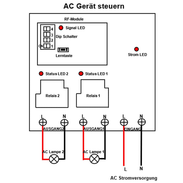 AC Stromversorgung Ausgang: Es kann AC 110V, 120V, 220V oder 240V Wechselstrom Geräte steuern.