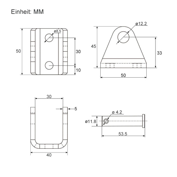 1. Jeder Linearantrieb würde zwei Montagehalterungen benötigen, einer um den Kopf des Linearantriebs zu befestigen, und eine andere um die Unterseite des Linearantriebs zu befestigen. Dieses Kit enthält zwei feste Halterung G . Dieser Linearantrieb ist auch mit zwei flachen Montagehalterungen kompatible: Rundscheibenhalterung zur Fixierung des Kopfes (Modell 0043075) und Flache Platten Halterung zur Fixierung der Unterseite (Modell 0043076) .