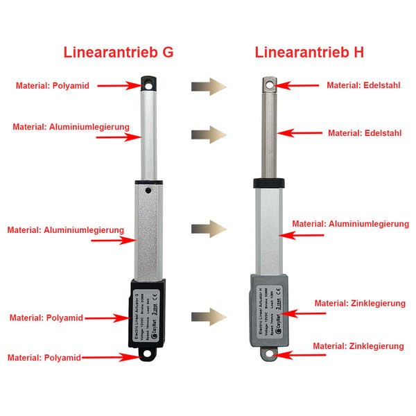 Betriebsgeräusch: ca. 45dB~55dB (Linearantriebe mit unterschiedlichen Parametern haben unterschiedliche Geräuschpegel.)