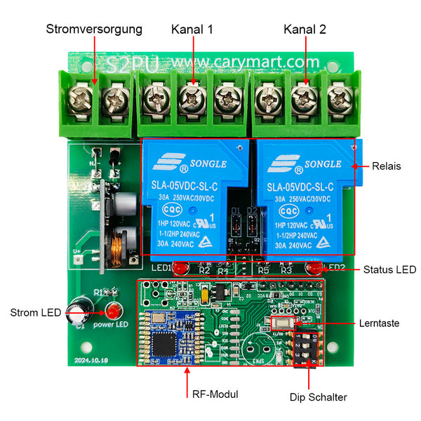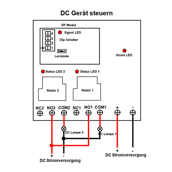 Dieser Empfänger ist ein Fernschalter mit sehr großer Reichweite. Es wurde von der drahtlosen LORA-Kommunikationstechnologie (Long Range) entwickelt und verfügt daher über einen ultralangen Arbeitsabstand, eine ultrahohe Empfangsempfindlichkeit, eine hervorragende Entstörungsfähigkeit und einen geringeren Stromverbrauch. Der Empfänger und der Sender bilden ein Empfänger-Sender-System. Dieses System eignet sich ideal zur Steuerung verschiedener AC/DC Geräte in Industrie, Landwirtschaft und Haushalt, wie z. B. Lichter, Sirenen, Schlösser, Motoren, Ventilatoren, Türen, Fenster, Elektromagnetventile, Sicherheitsalarm und Geschäftsschilder.