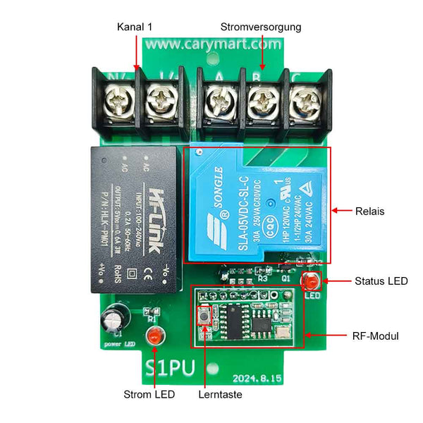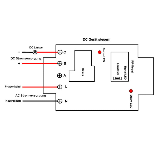 Relaisausgang: Dieser Empfänger ist der trockene Relaisausgang, es können zur Steuerung DC und AC Geräte verwendet werden. Die Ausgangsklemmen sind NO / NC (normalerweise geöffnet / normalerweise geschlossen) und dienen als Schalter. Es bedeutet, dass Sie auch eine separate Stromversorgung an Geräte anschließen sollen.